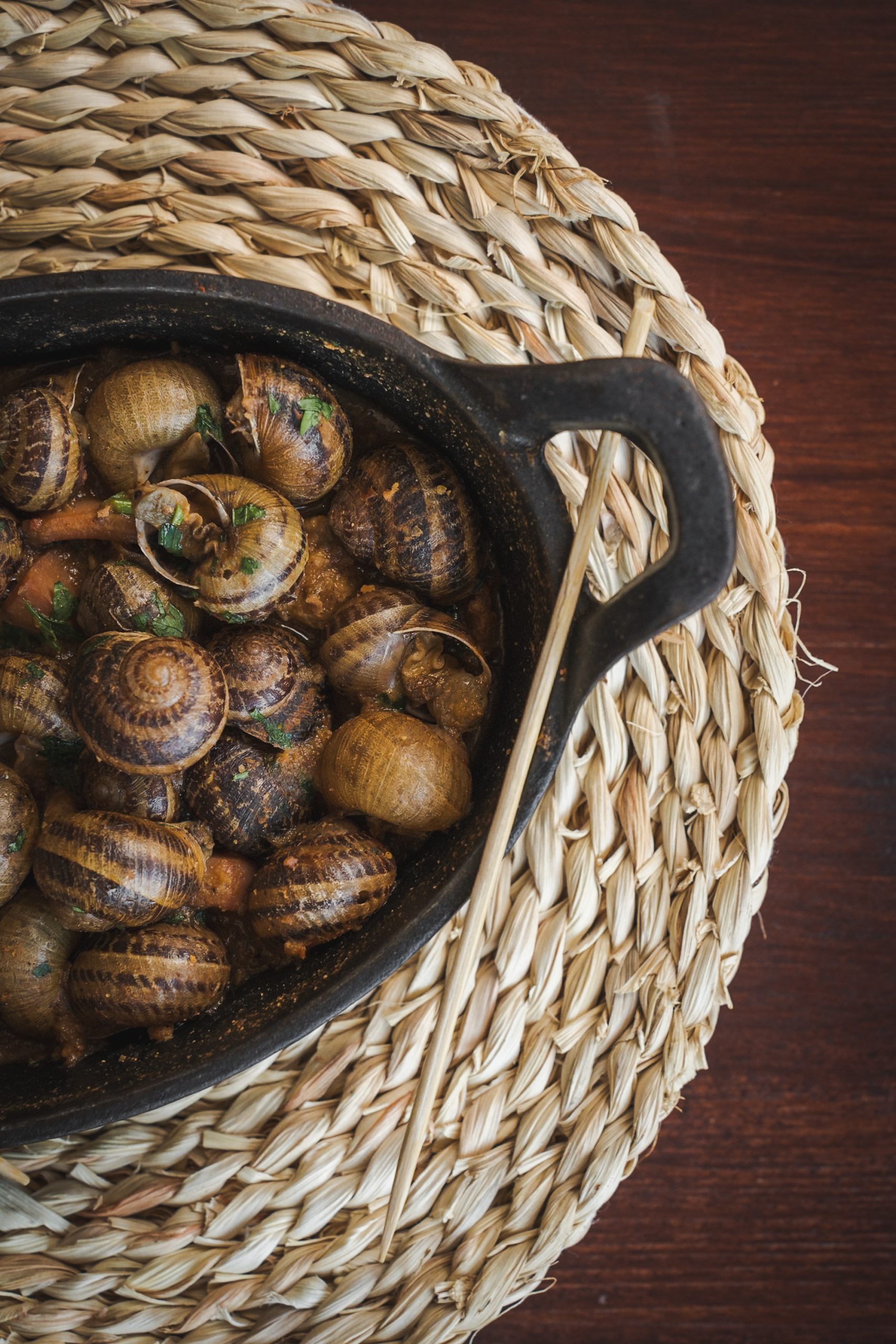 Cargols amb sofregit de ceba, sèpia i llonganiseta desfeta amb un toc picant.